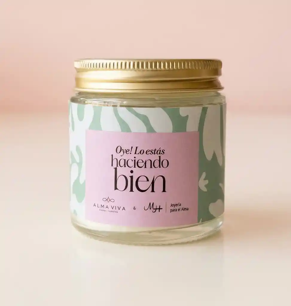 Vela a base de cera de soya y cera convencional Fragancia: Mandarina. Almendras y Peonias