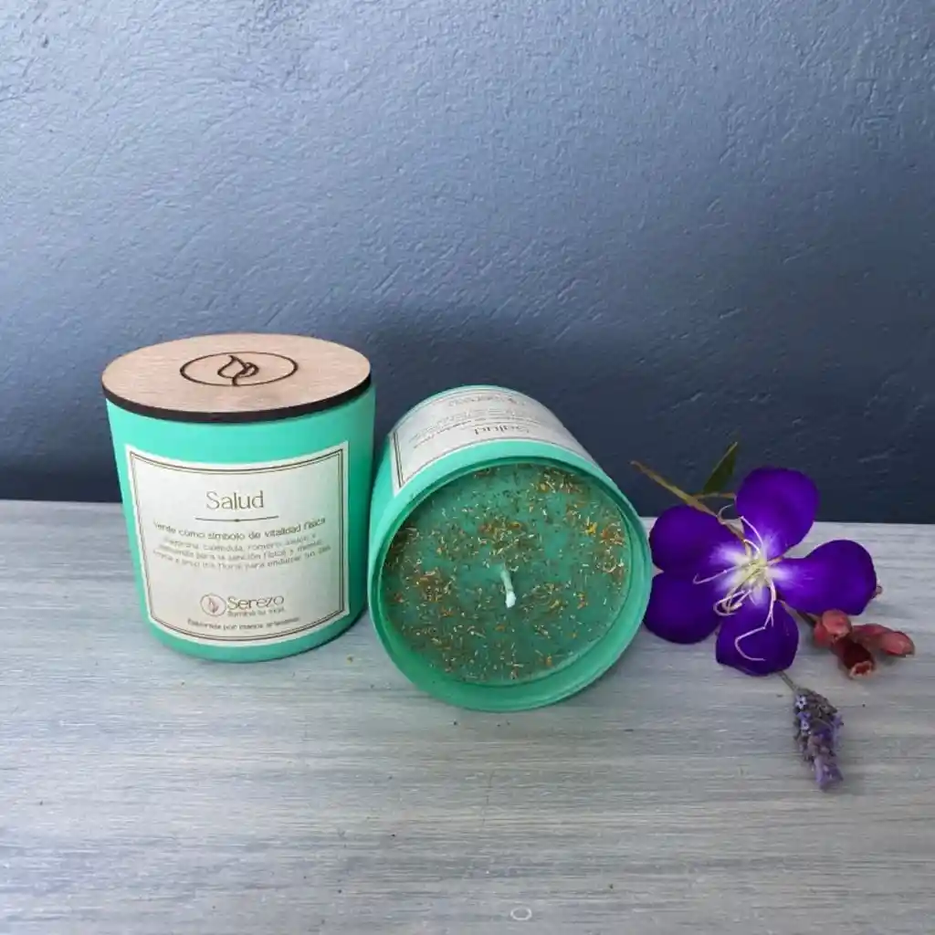 Verde como símbolo de vitalidad física. Mejorana, caléndula, romero, sauco y manzanilla para la sanción física y mental. Aroma a arco iris floral para endulzar tus días. Elaborada por manos artesanas. MEDIDAS: 8 cm x 8 cm. MATERIAL: CERA DE PALMA