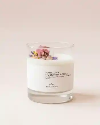 Vela a base de cera de soya, Fragancias: Flor de Mayo, Nardo y Verbena.