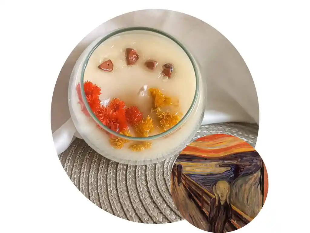 "¡Experimenta la intensidad y la expresión del famoso 'El Grito' de Vincent van Gogh con nuestra vela inspirada en esta icónica obra de arte! Cada vela ha sido meticulosamente diseñada para capturar la esencia y el poder emocional de esta pintura magistral. Disfruta de la suave y envolvente luz de la vela mientras te sumerges en un mundo de emociones y autenticidad. Nuestra vela del 'El Grito' va más allá de la decoración, es una invitación a explorar la complejidad de las emociones humanas y la búsqueda de la liberación. Inspirada en los colores vibrantes y los trazos enérgicos de la obra de Van Gogh, esta vela crea una experiencia visual y emocional única. Deleita tus sentidos con el cálido resplandor de las llamas y la presencia intensa del 'El Grito'. Enciende esta vela durante tus momentos de introspección, meditación o cuando desees sumergirte en la expresión artística y la profundidad emocional. Aprovecha esta oportunidad para llevar a tu hogar la fusión perfecta entre la suavidad de la luz de la vela y la pasión del 'El Grito' de Van Gogh. ¡Eleva tus momentos de reflexión y bienestar a otro nivel! Adquiere tu vela del 'El Grito' hoy mismo y déjate llevar por la intensidad y la autenticidad de esta icónica pintura. ¡Crea un ambiente único y poderoso en tu hogar y disfruta de la fuerza y la belleza del arte cada vez que enciendas esta vela!"