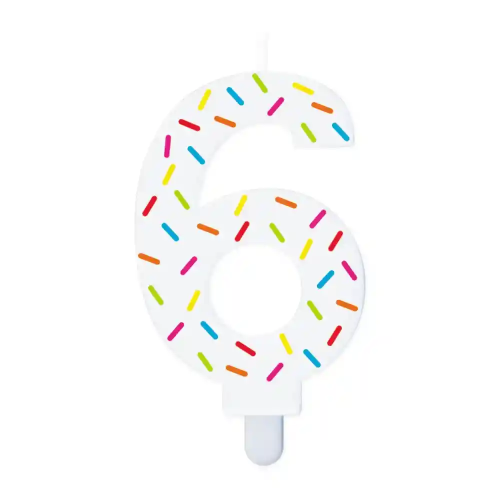 La Vela Blanca Chispas Colores Número 6 Sempertex es una vela decorativa diseñada para añadir un toque festivo y colorido a celebraciones como cumpleaños, aniversarios o eventos especiales. Características principales: Diseño único: La vela tiene la forma del número 6, ideal para celebrar edades, aniversarios o fechas especiales que incluyan este número. Decoración festiva: Está adornada con chispas de colores, agregando un efecto visual atractivo y alegre. Material: Fabricada en parafina, un material comúnmente utilizado en la fabricación de velas debido a su capacidad para derretirse de manera uniforme y segura. Tamaño: La vela mide aproximadamente 9 cm de altura, un tamaño adecuado para colocarse en pasteles o postres sin ser demasiado grande. Uso recomendado: Ideal para eventos donde se desea sorprender y alegrar a los asistentes con un detalle original y colorido.