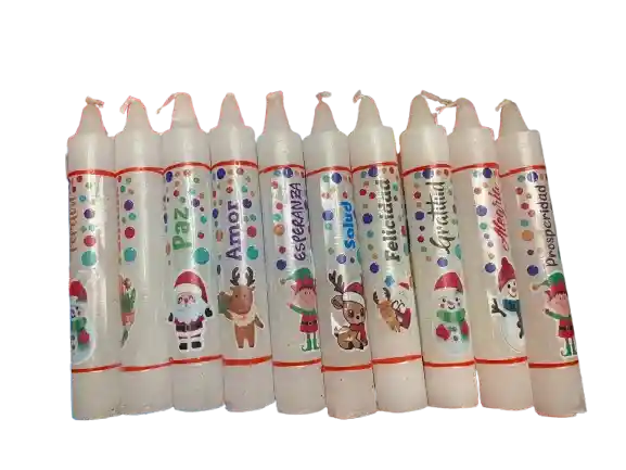 VELA BLANCA PARA FAROLES DECORADA X10
