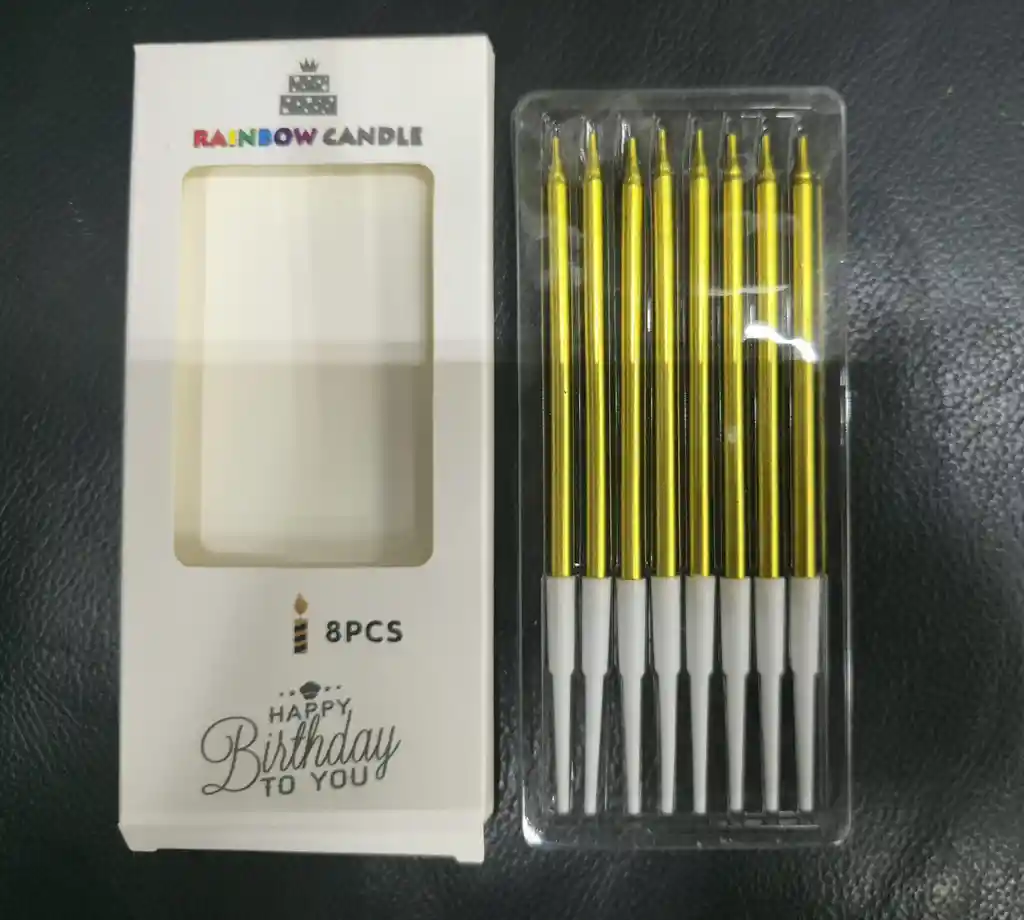 Vela Para Cumpleaños, para fiestas color dorada, trae 8 Pcs