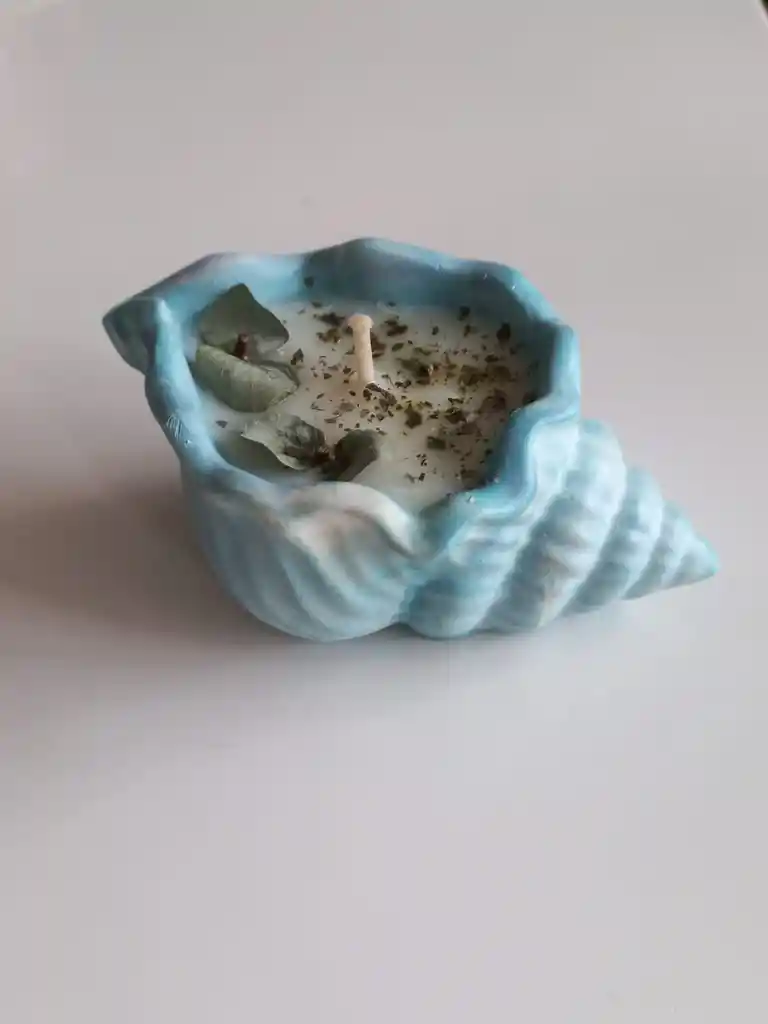 Maceta Caracola, Mas de 40gr de cera. Para recordatorios o armar tus kits para fechas especiales. Cera 100% vegetal (cera de soya y coco). Todas las velas las usas para hidratar tus manos, codos y rodillas. Medidas: 10,5x6x4 cm 📏