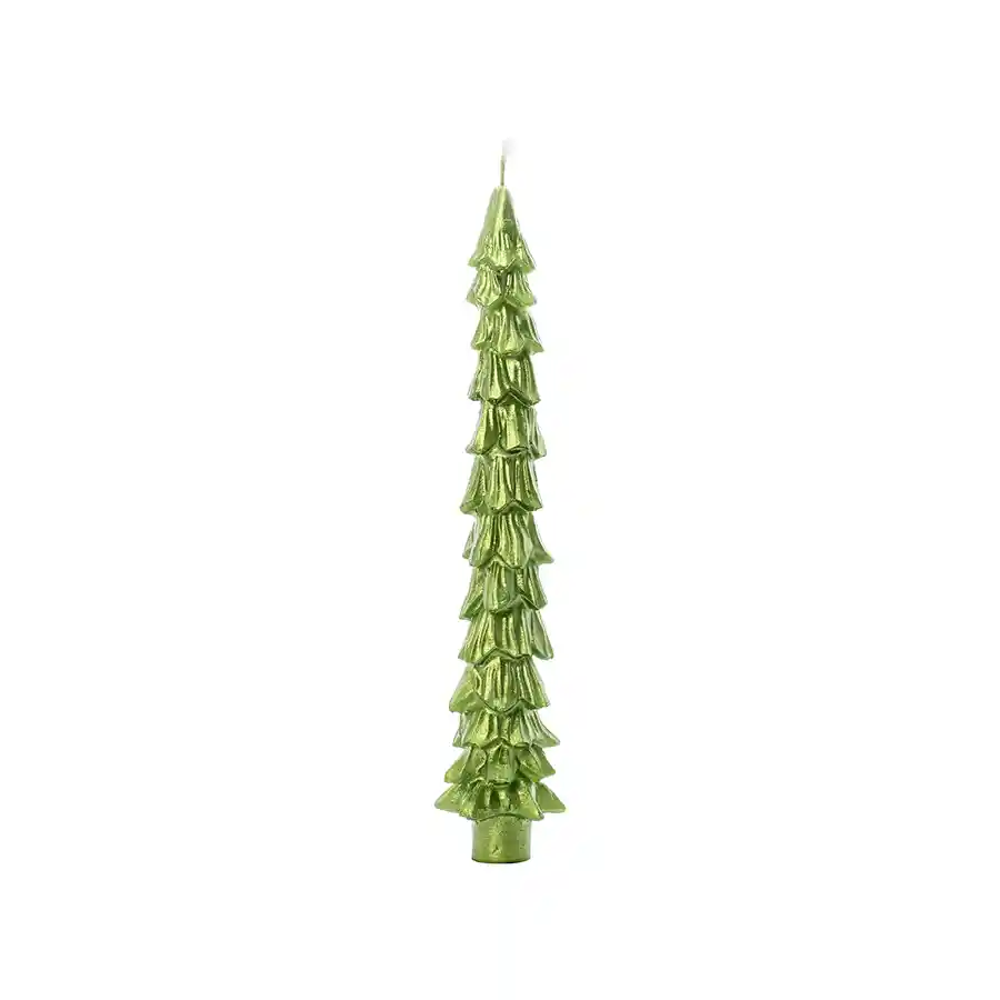 Vela cererías españolas candelabro pino dúo de 10x29 cm en color verde, set x2 unidades, fabricadas en cera. Diseño navideño elegante.