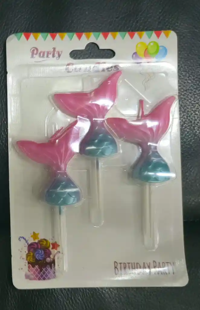 Vela Toper Cola De Sirena * 3 Pcs, Para Fiestas, Cumpleaños, Happy Birthday, cupcake, vela para torta, Medellìn