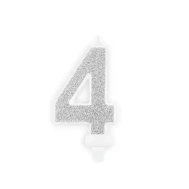 Velas para cumpleaños Color Plateado #4 Tamaño: 8 cm de alto 4.2 de ancho Vela Mágica. Disponibilidad inmediata