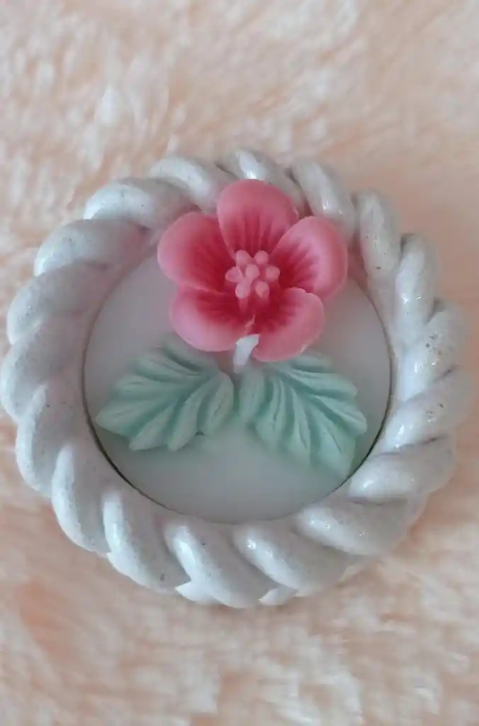 Vela flor pequeña en base de concreto. Agradable aroma.