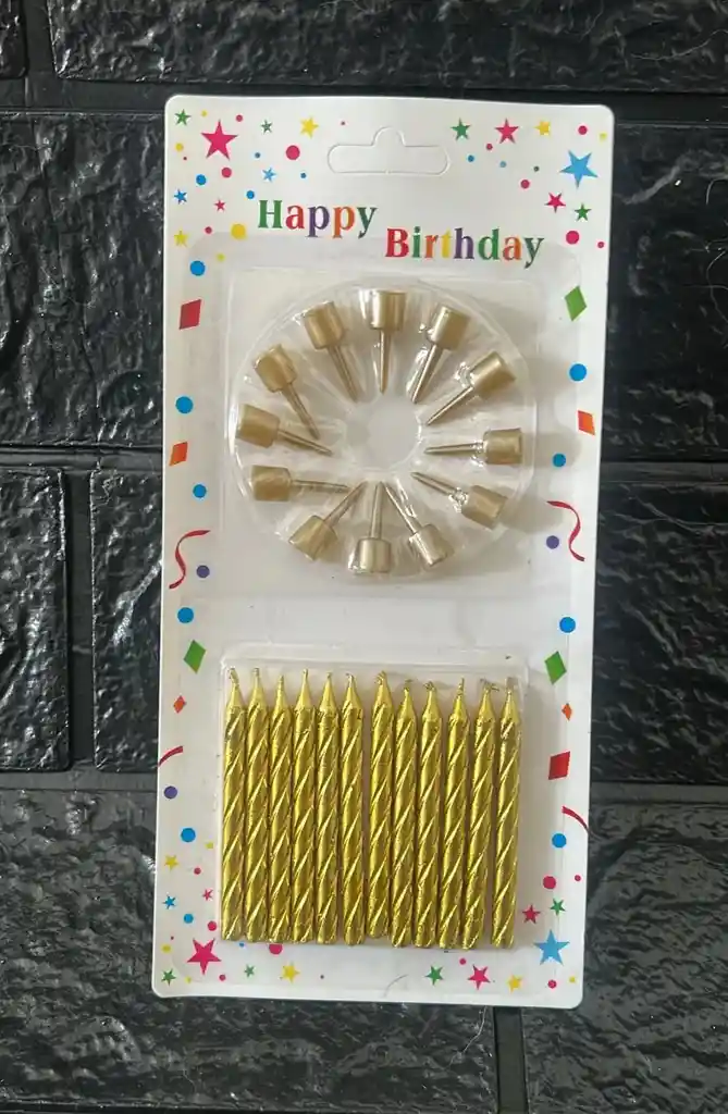VELA CUMPLEAÑOS ESPIRAL DORADAS PEQUEÑAS + BASE X12 COD.1543