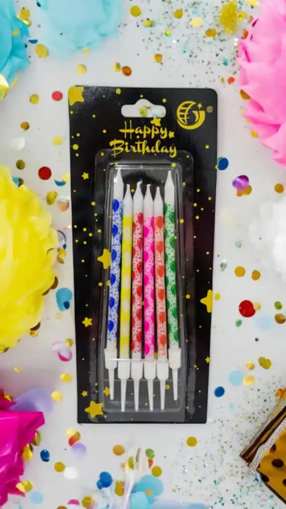 Velas Decorativas en Colores Vivos, Diseño Globos. Cada vela mide: Sin la base:10cm Con la base:12cm