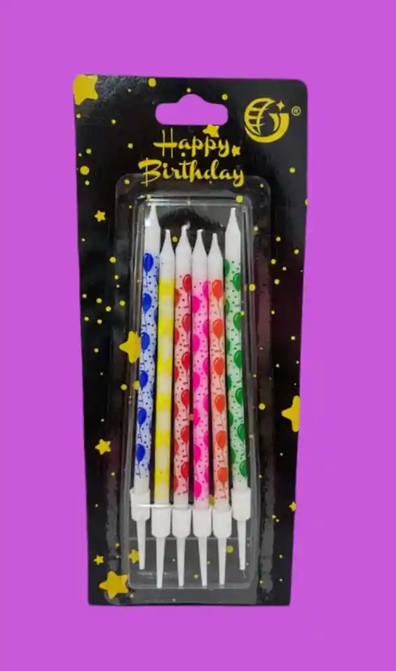 Velas Decorativas en Colores Vivos, Diseño Globos. Cada vela mide: Sin la base:10cm Con la base:12cm