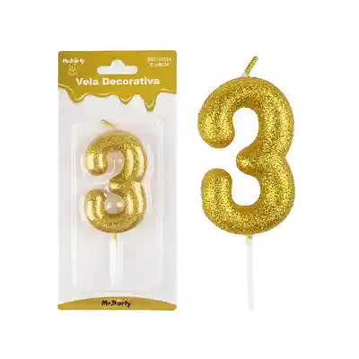 Vela De Aniversario Dorada Nemero 3 4.5 Cm