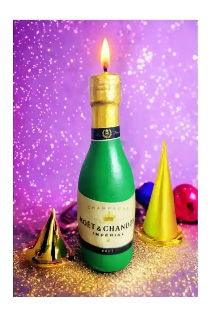 Características del producto: Diseño: Botella VELA CUMPLEAÑOS CHAMPAGNE MOET Material: Cera Tamaño: 8 cm de altura aproximadamente Cantidad en el paquete: 1