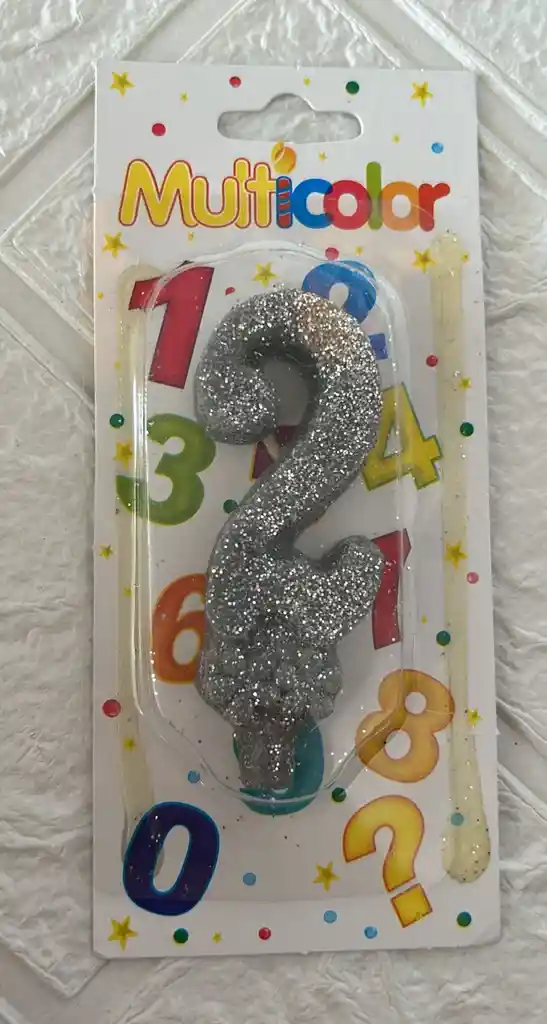 VELA DE CUMPLEAÑOS NUMERO 2 PLATEADA COD.3078