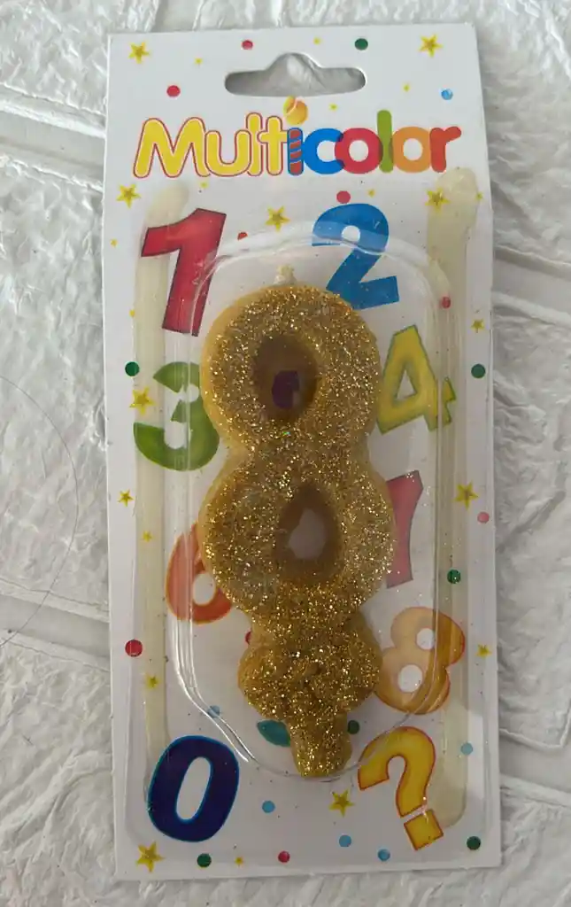 VELA DE CUMPLEAÑOS NUMERO 8 DORADA COD.3073