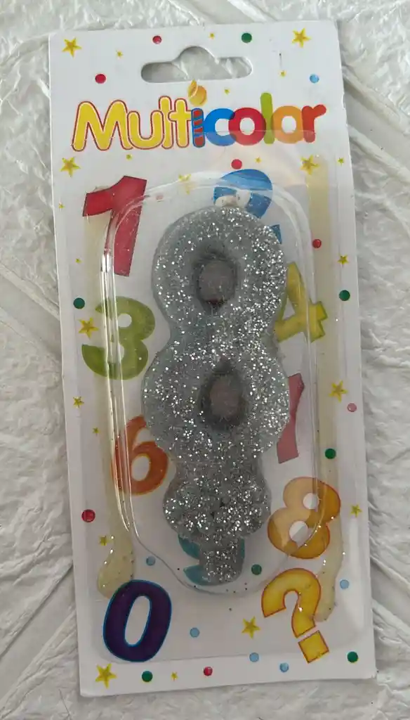 VELA DE CUMPLEAÑOS NUMERO 8 PLATEADA COD.3084