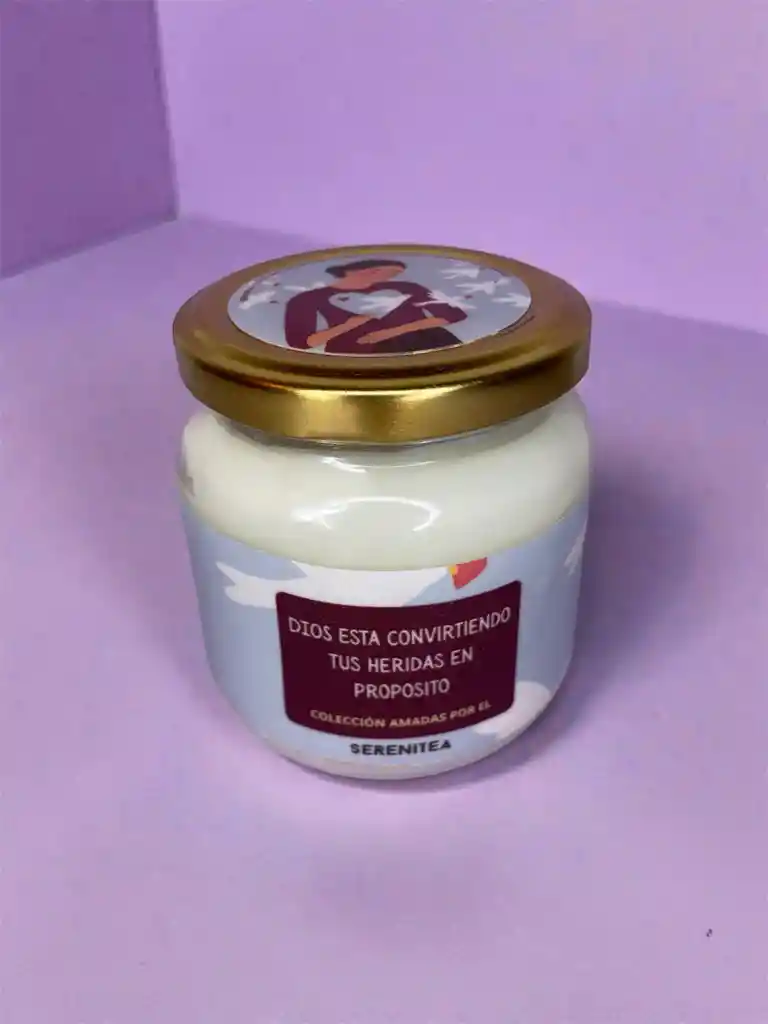Vela aromática aroma: Vainilla, Jazmín & Sandalo. Con un mensaje para el alma. Peso neto 375gr