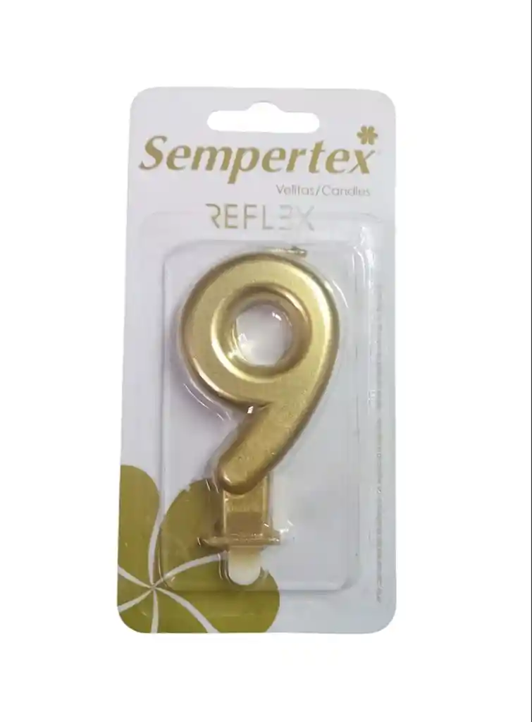 Vela Número 9 Dorado Metálico – Sempertex Reflex Agrega un toque elegante y brillante a tus celebraciones con esta espectacular vela en forma del número 0 de la línea Reflex de Sempertex. Su acabado dorado metálico le da un aire sofisticado y festivo, ideal para decorar tortas de cumpleaños, aniversarios, o cualquier evento especial. Características: Color: Dorado metálico Tamaño: 7 cm aproximadamente Marca: Sempertex Línea: Reflex Material: Parafina de alta calidad Fácil de colocar y encender Perfecta para combinar con otros números * Ideal para formar edades, fechas o aniversarios combinándola con otras velas numéricas.