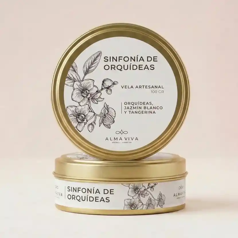 Vela a base de cera de soya y cera convencional , Fragancias: Orquideas, Jazmin Blanco y Tangerina