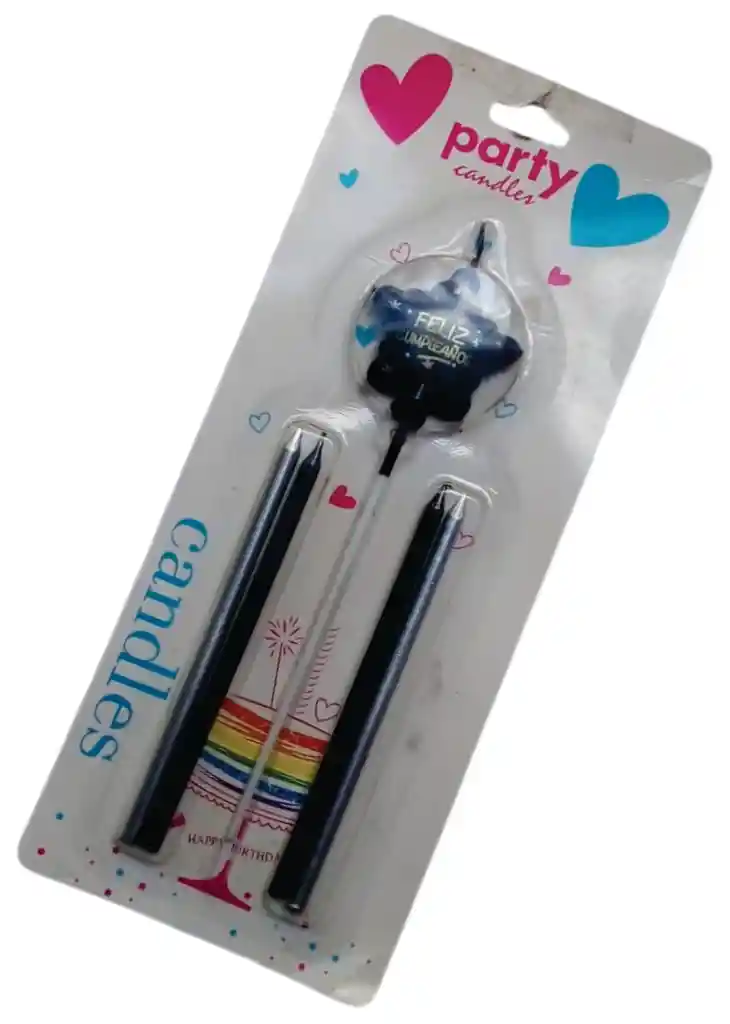 Un diseño metalizado en colores negro y plata. Incluye una vela grande en forma de estrella con la inscripción "FELIZ CUMPLEAÑOS". Las velas están hechas de cera de alta calidad con una llama estable.