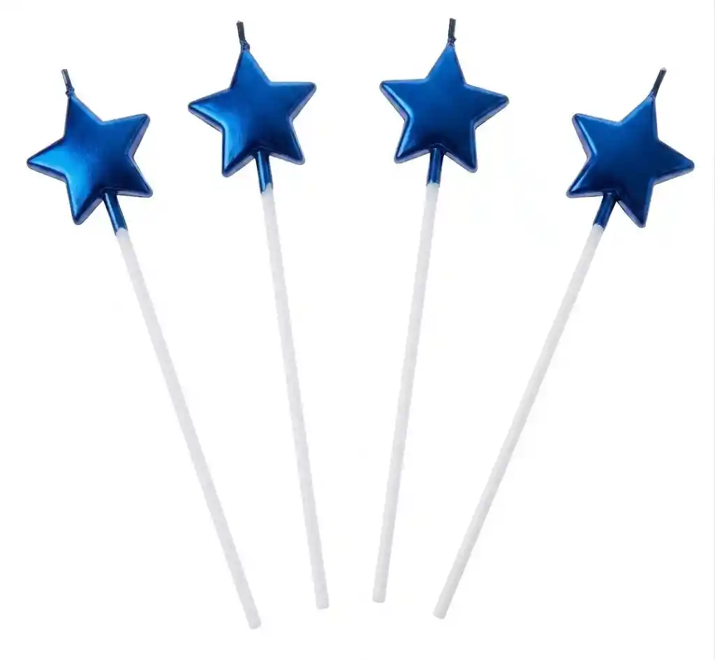 Vela Estrellas X 4 Unidades Azul Rey. Ideal para decorar tartas de cumpleaños y tartas de fiestas.