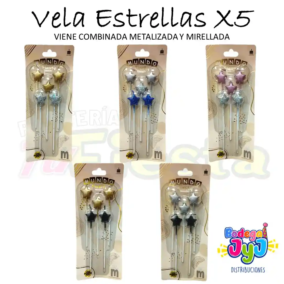 Se vende por unidad, cada paquete trae 5 velas vienen combinadas metalizadas y mirelladas. POR FAVOR DEJA EN LOS COMENTARIOS EL COLOR QUE NECESITAS