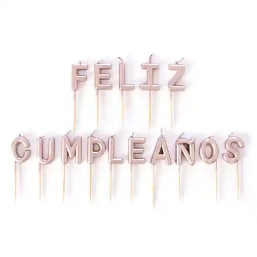 VELA FELIZ CUMPLEAÑOS LETRA A LETRA EN COLOR ORO ROSA