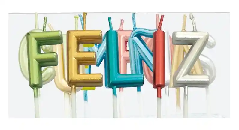 Estas velas con letras metalizadas forman un mensaje de "Feliz Cumpleaños" que eleva cualquier celebración. Su acabado brillante aporta un toque sofisticado y festivo, creando un ambiente único y memorable para el cumpleaños.