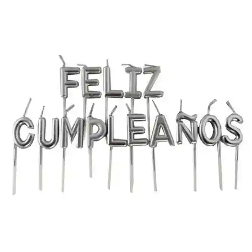 VELA FELIZ CUMPLEAÑOS LETRA A LETRA EN COLOR PLATEADA