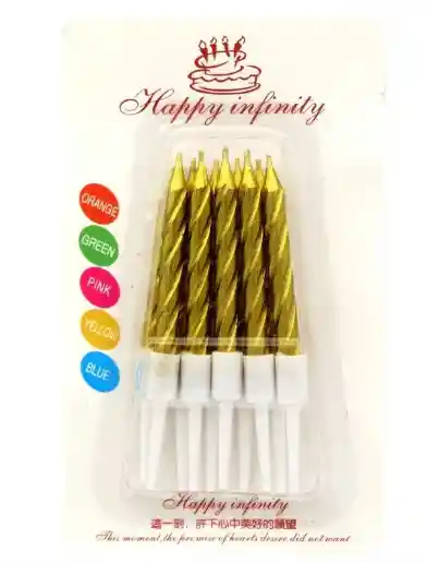 vela fiesta rayas dorada 10un de 6cm
