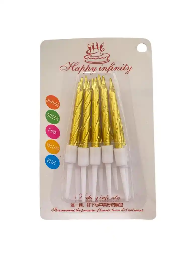 vela fiesta rayas dorada 8un de 7cm