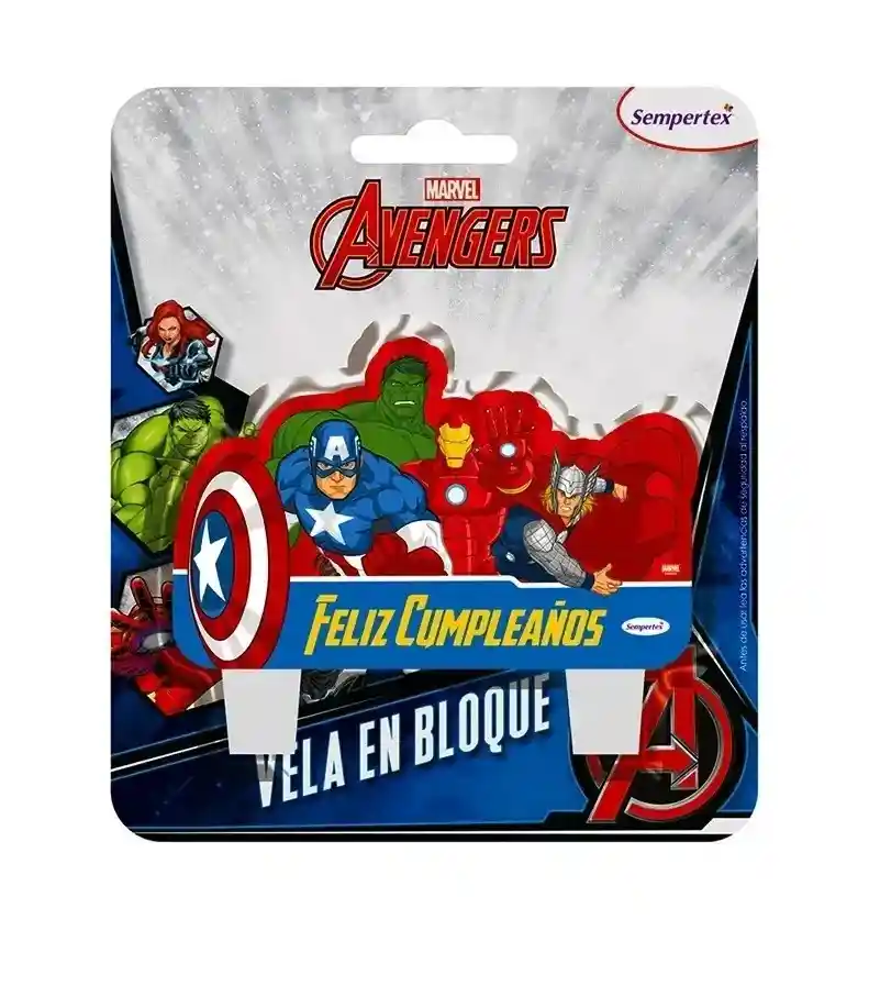 VELA FIGURA AVENGERS FELIZ CUMPLEAÑOS 8 X 5 CM SEMPERTEX EAN 7703340022222