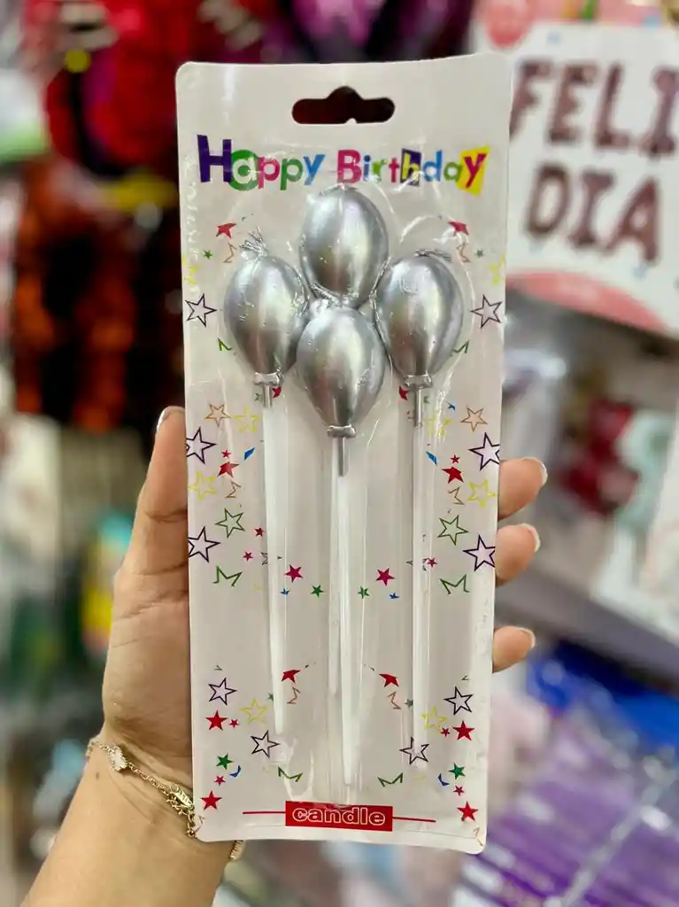 VELA GLOBOS PLATA X 4 UNIDADES