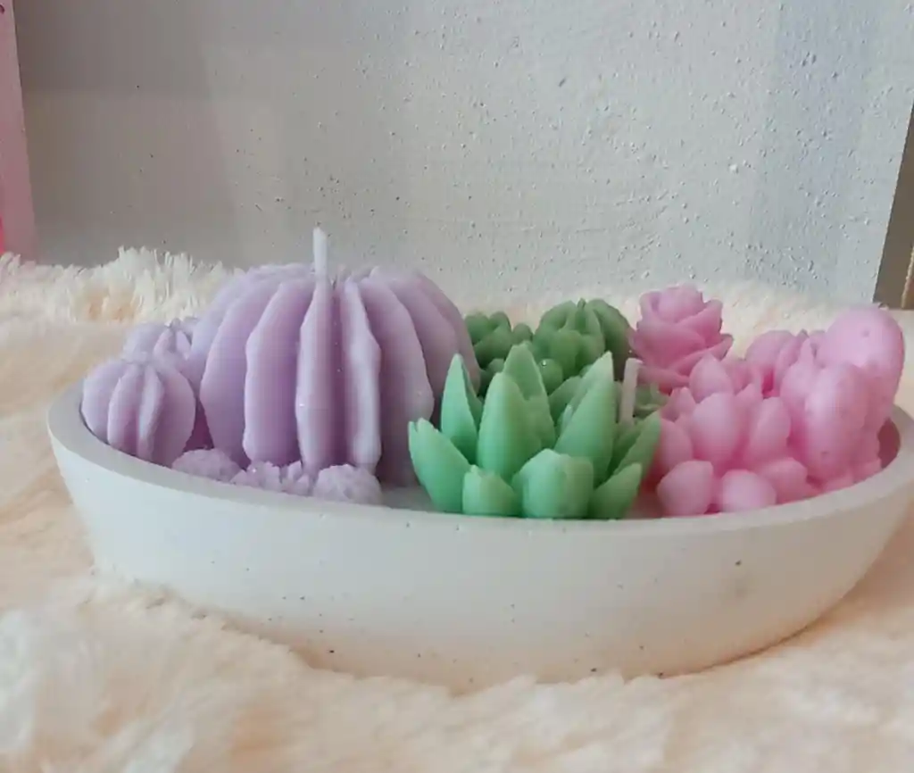 Vela elaborada en cera vegetal, con agradable aroma. Base elaborada en concreto.