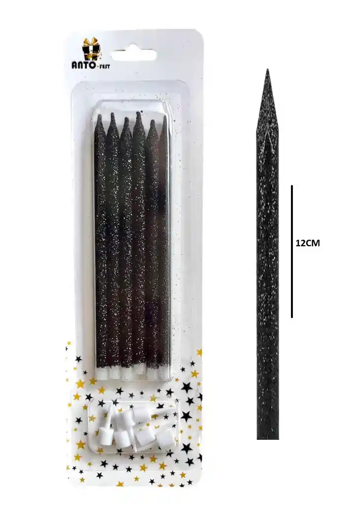 Vela Larga Escarchada Negra x 6 unidades.