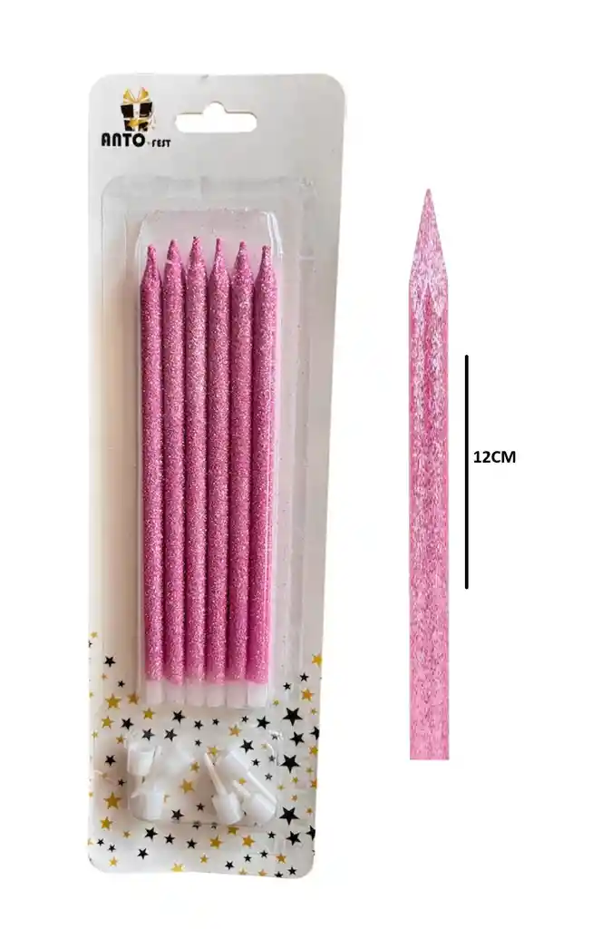 Vela Larga Escarchada Rosada x 6 unidades