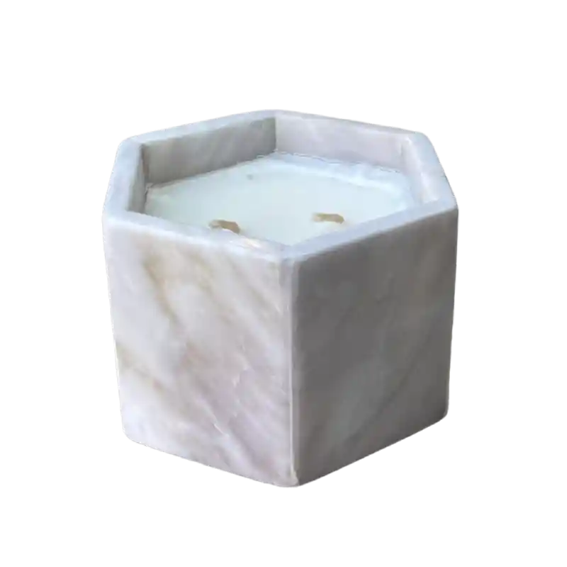 Vela aromática de sándalo, cedro y haba tonk. Envase de mármol y cera vegetal proveniente de cultivos autosostenibles, envasada de manera artesanal. Incluye un empaque en terciopelo, ideal para regalar. MATERIAL: Mármol. Cera vegetal DIMENSIONES: alto 8cm ancho 12cm contenido 12 oz HECHO EN COLOMBIA COLORES: blanco CUIDADOS Y MANTENIMIENTO: Prender la vela por primera vez al menos 3h y no mantener encendida más de 4h. Para una mejor eficiencia recortar el pabilo 1/2 cm cada vez que se vaya a encender la vela