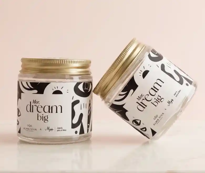 Vela a base de cera de soya y cera convencional . Fragancia: azahar, sándalo oriental y vainilla pompona