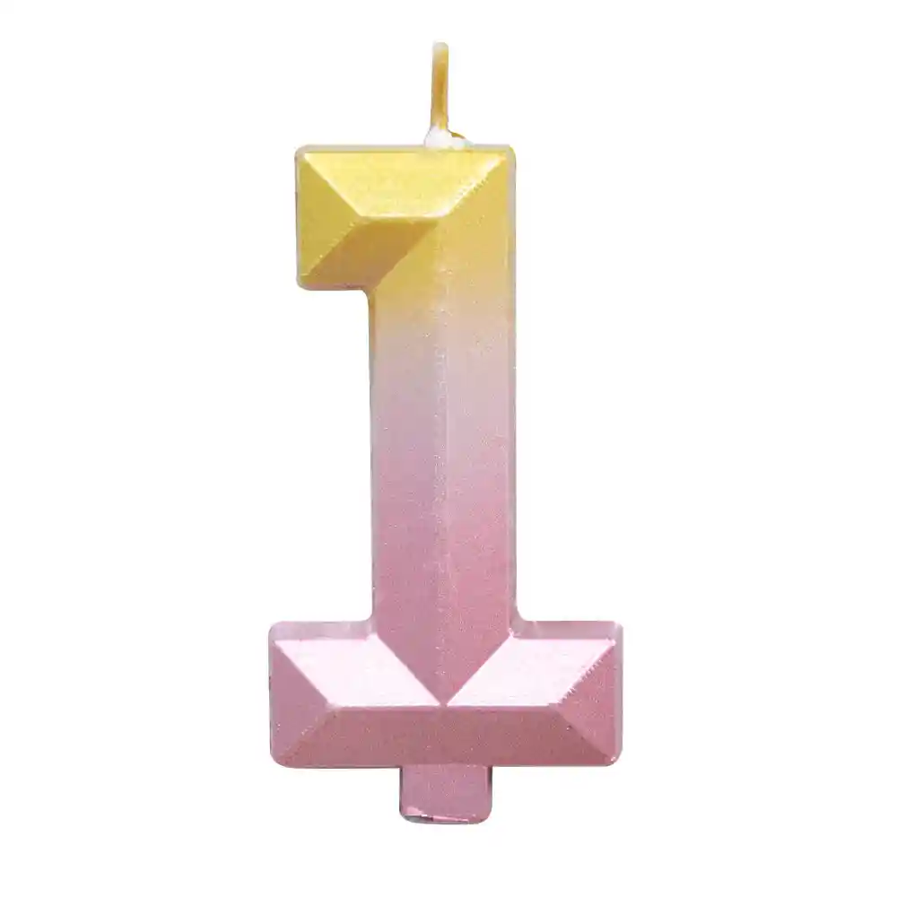 Vela Numerica Degradada Rosa - Dorado # 1 Sempertex x 1 Unidad