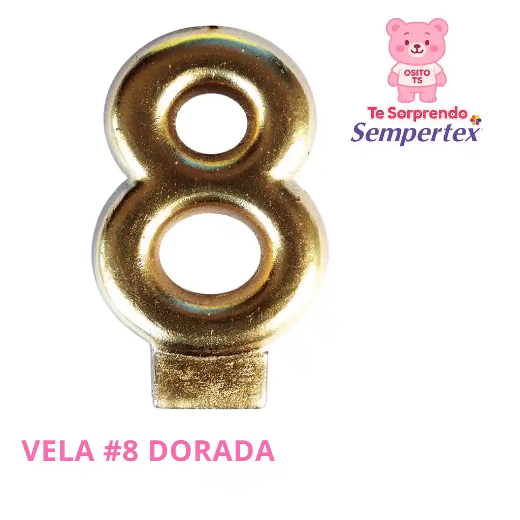 Añade un toque de distinción a tus celebraciones con esta vela número 8 en color dorado de Sempertex. Su diseño elegante y brillante la hace ideal para decorar pasteles en cumpleaños, aniversarios y eventos especiales. Combínala con otros números para personalizar tus momentos únicos. ¡Un detalle sofisticado que hará tus festejos inolvidables!