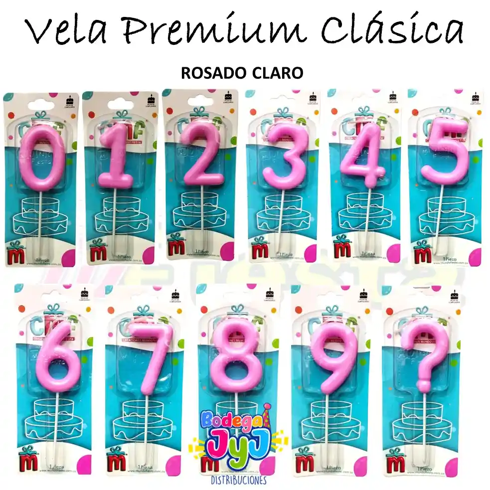 VELA NÚMERO PREMIUM ROSADO CLARO DISPONIBLE 0-1-2-3-4-5-6-7-8-9-? POR UNIDAD ALTO 13CM ANCHO (VARÍA SEGÚN EL NÚMERO) 5CM APROXIMADAMENTE DEJAR EN LOS COMENTARIOS LOS NÚMEROS QUE NECESITA