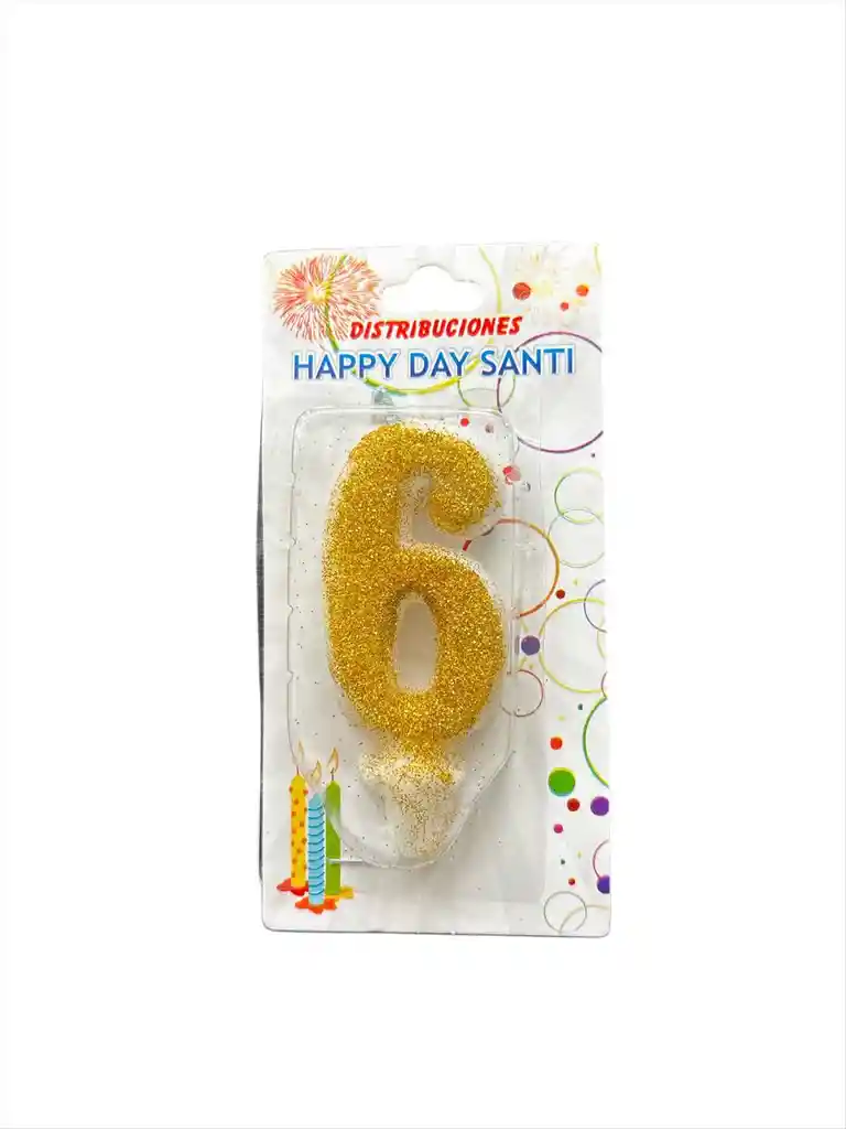 VELA PARA TORTA DE CUMPLEAÑOS DISEÑO NUMERO SEIS COLOR DORADO