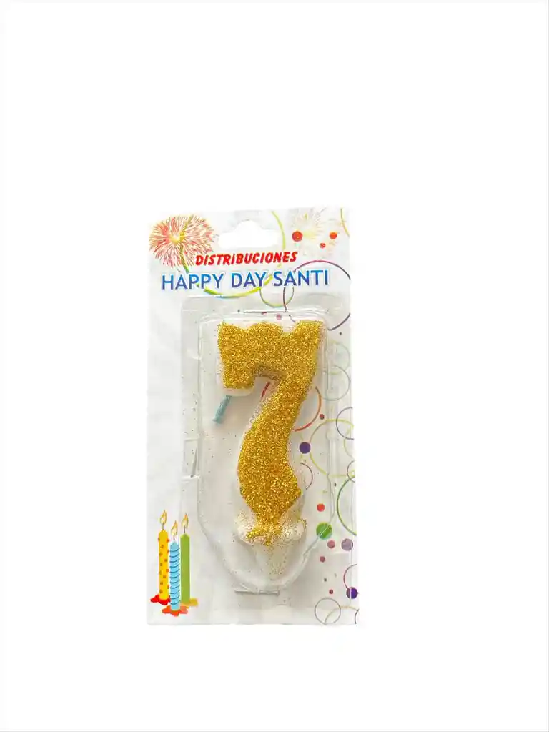 VELA PARA TORTA DE CUMPLEAÑOS DISEÑO NUMERO SIETE COLOR DORADO