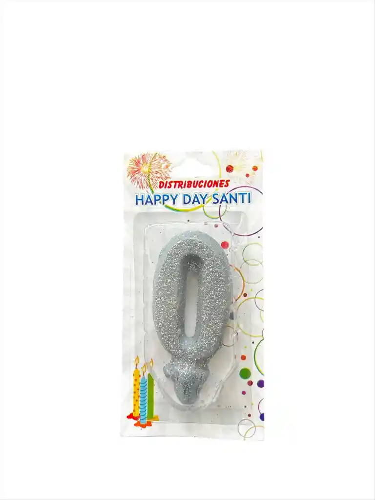 VELA PARA TORTA DE CUMPLEAÑOS DISEÑO NUMERO CERO COLOR PLATEADO