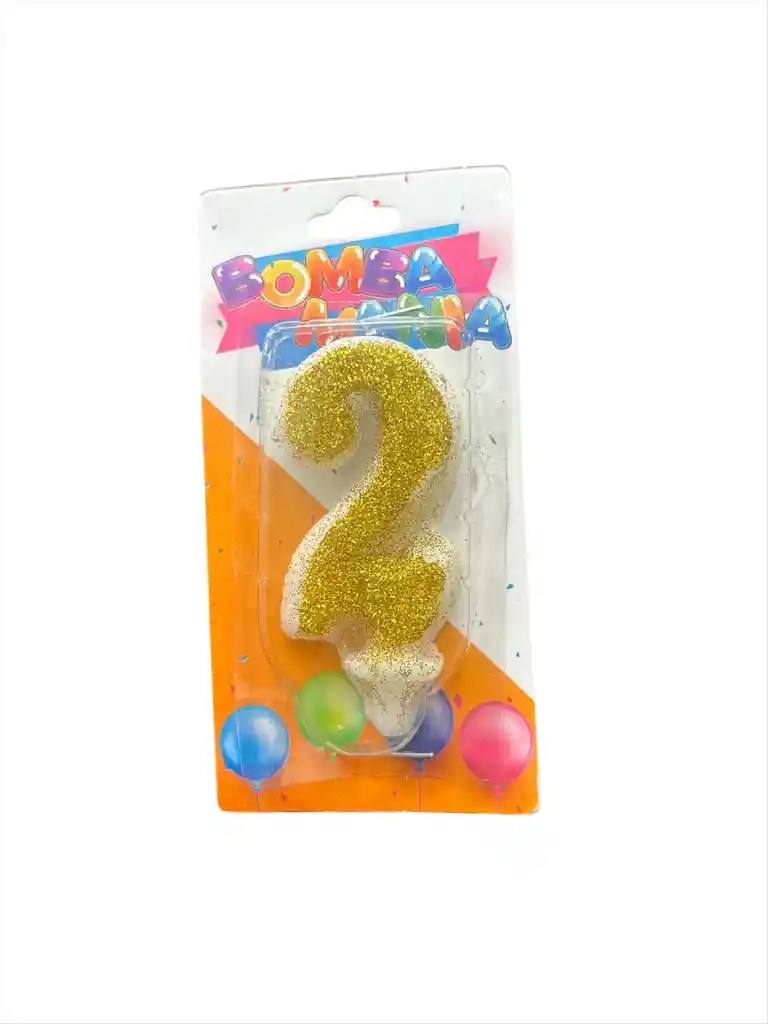 VELA PARA TORTA DE CUMPLEAÑOS DISEÑO NUMERO DOS COLOR DORADO