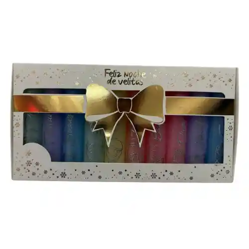 CAJA DE VELAS PERSONALIZADAS X10UND, DISPONIBLE EN COLORES SURTIDOS Y ESTAMPADOS CON IMAGENES DE NACIMIENTO (MARIA, JOSE, NIÑO DIOS, LOS REYES MAGOS) CADA VELA MIDE 10CM LARGO X 2 CM DIAMETRO, Y VIENEN EN UNA LINDA CAJITA