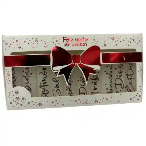 CAJA DE VELAS PERSONALIZADAS X10UND, DISPONIBLE EN BLACO Y ESTAMPADOS DE COPOS DE NIEVE, CORAZONES, ESTRELLAS, CAMPANAS CADA VELA MIDE 10CM LARGO X 2 CM DIAMETRO, Y VIENEN EN UNA LINDA CAJITA NOTA: LAS VELAS VIENEN SIN SOPORTE DE MADERA