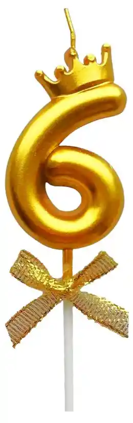 VELA PREMIUM METALIZADA CUMPLEAÑOS NUMERO 6 CON CORONA COLOR DORADO