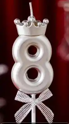 VELA PREMIUM METALIZADA CUMPLEAÑOS NUMERO 8 CON CORONA COLOR PLATEADO