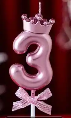 VELA PREMIUM METALIZADA CUMPLEAÑOS NUMERO 3 CON CORONA COLOR ROSADO